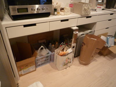下のオープンスペースに置いた引き出しに