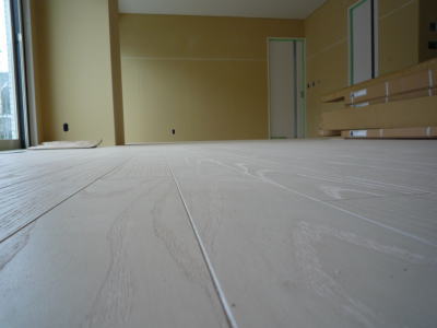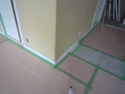 フローリング、養生してあるんですが、