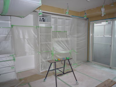 さて、工事は、天井塗りです。