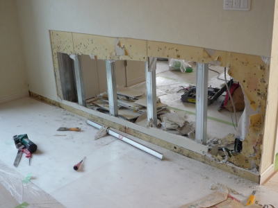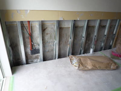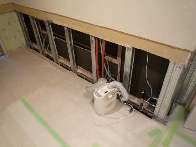 昨日までとは打って変わって、床も壁も全部とって、やり直す事になってます。