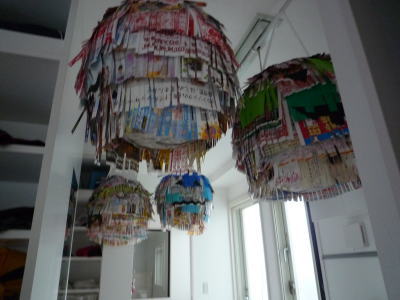と、夜中、折り紙と広告で、それらしく飾りました。