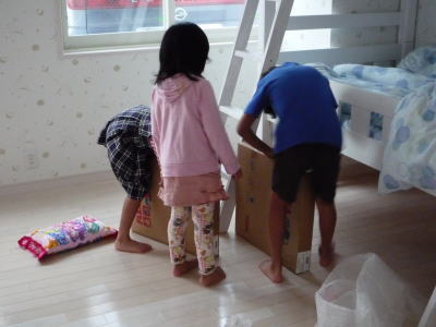 剥ぎ取るような感じで、取り出し、おやつをつめて、その日の作業は終わり。