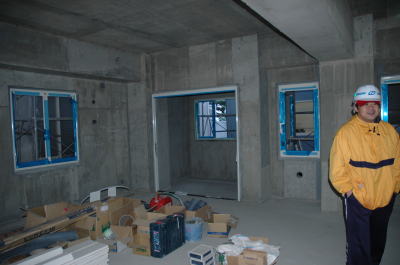 画像では、クリア塗装のフローリング色に見えますが、実物はもっと白っぽく、工事の床担当の方も、いい木だねー、輝いてるみたいだねーって言ってくださいました。