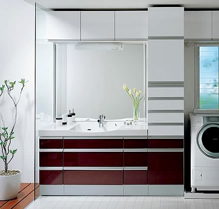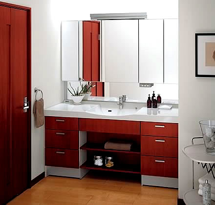 ←こちらは1ボールなので、真ん中が大きい鏡でちょうどいいのですが、うちは2ボールなので、小さい鏡2枚が正面に来るので、本当に顔の中心が切れ目になってしまいます。