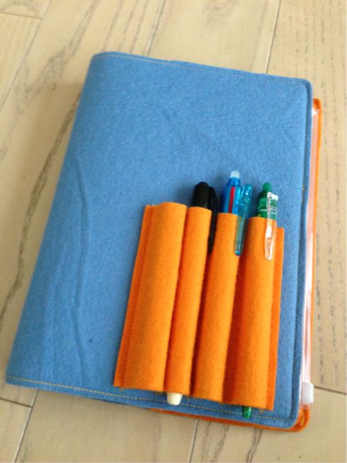 表紙はバインダーのままの透明なのが良かったんですが、ペンホルダーにいいのがなくて、うちに余ってたフェルトで作りました。