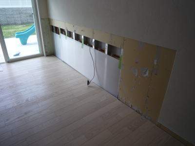 昨日までとは打って変わって、床も壁も全部とって、やり直す事になってます。